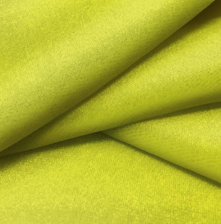 La tela base, Terciopelo Retro - Paris, es un tejido de terciopelo compuesto por 93% de poliéster y 7% de elastano, con un gramaje de 245 gr/m2. El color liso impreso es Verde Ácido, con un CMYK de 35 12 96 1. Este color es vibrante, refrescante y llamativo, que evoca la naturaleza y la frescura. Combina especialmente bien con tonos neutros como blanco, gris y negro, así como con colores más intensos como el azul marino o el amarillo mostaza.