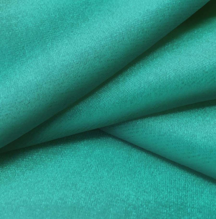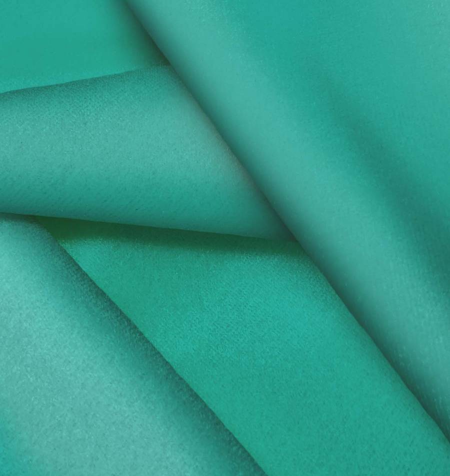 La tela base, Terciopelo Retro - Paris, es un exquisito tejido de terciopelo compuesto por 93% POLIÉSTER y 7% ELASTANO, con un gramaje de 245 gr/m2 y una anchura de 150 cm. Su color verde menta oscura, representado por un CMYK de 81 24 56 7, es vibrante y elegante. Este color se combina especialmente bien con tonos neutros como gris, blanco y negro, así como con tonalidades más intensas como el dorado o el azul marino.