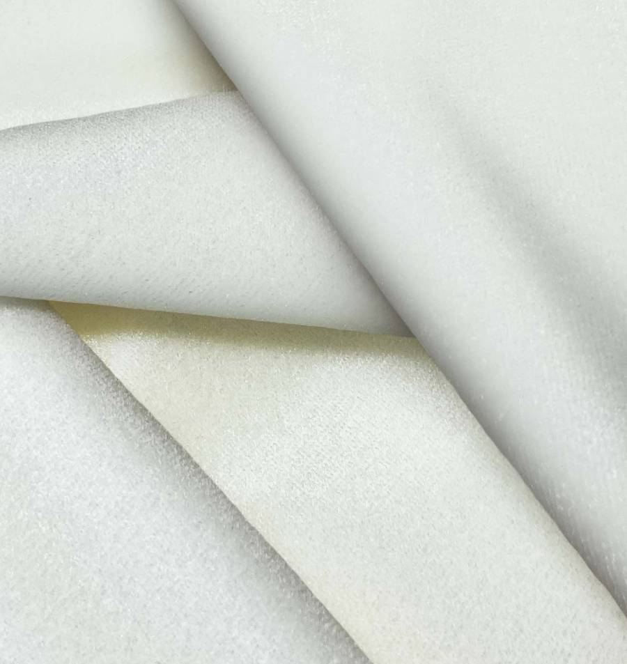 La tela base, Terciopelo Retro - Paris, es un suave y brillante terciopelo de poliéster con un color verde aguamarina claro, reflejando un CMYK de 18 8 16 0. Este color simboliza la frescura, la calma y la serenidad, y combina especialmente bien con tonos neutros como el blanco, el beige y el gris.