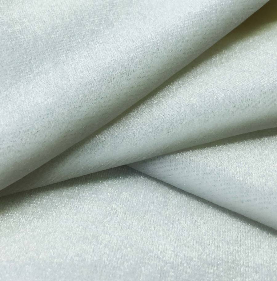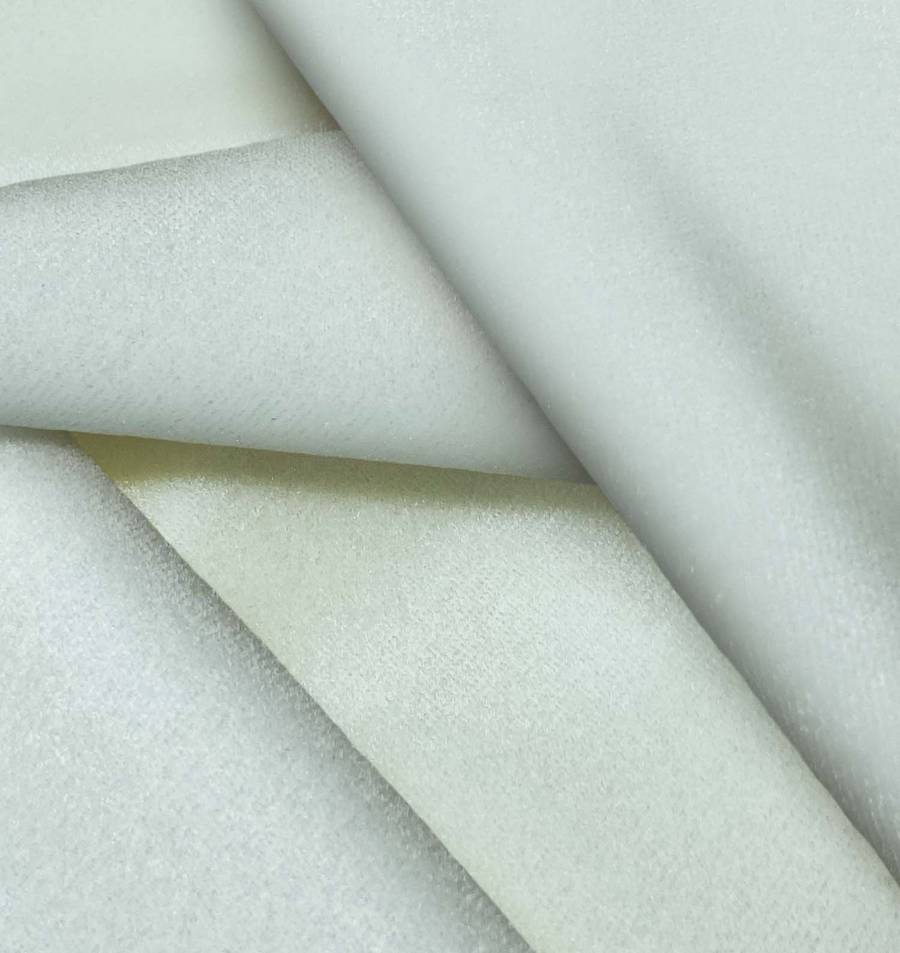 La tela base, Terciopelo Retro - Paris, es un terciopelo suave y elástico en color azul bebé, con un CMYK de 33 13 24 1. Representa elegancia y delicadeza. Combina perfectamente con tonos neutros como blanco, gris y crema, así como con tonos pastel como rosa y lila.