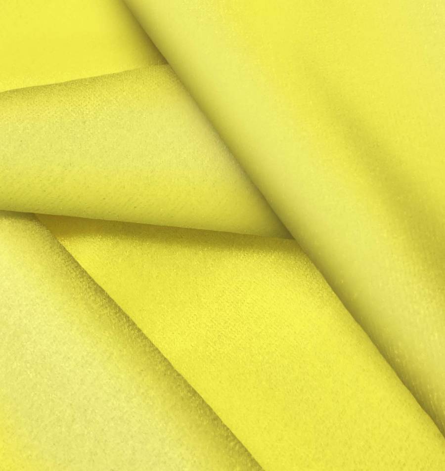 La tela base de este tejido es Terciopelo Retro - Paris en un vibrante color amarillo canario, con un CMYK de 9 0 81 0. Este color simboliza la alegría y la vitalidad, y combina perfectamente con tonos neutros como blanco, gris o negro para crear un contraste elegante y moderno.