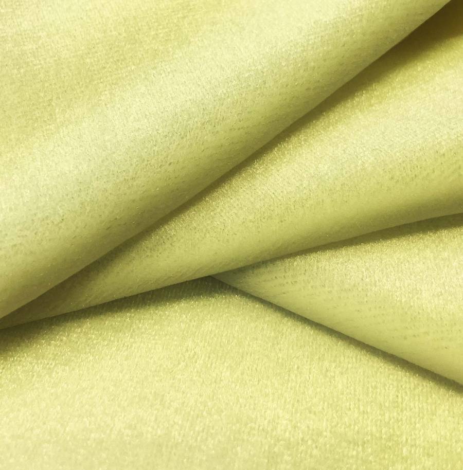 La tela base Terciopelo Retro - Paris es un terciopelo de poliéster con un toque elástico y un gramaje de 245 gr/m2. El color liso impreso en este tejido es un amarillo maíz con una combinación de tintas CMYK de 12 1 65 0.