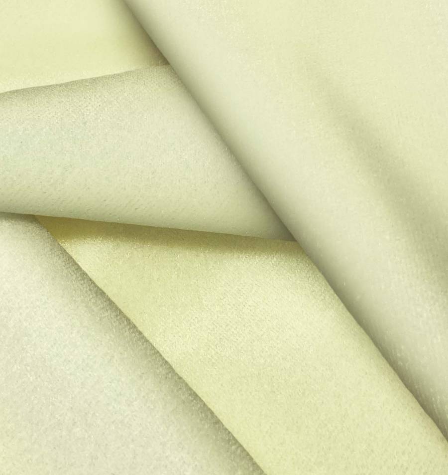 La tela base Terciopelo Retro - Paris es una tela de terciopelo con una composición de 93% poliéster y 7% elastano. El color liso impreso es Verde Pergamino, con un CMYK de 17 2 45 0. Este color secundario es una combinación de verde claro con matices amarillos y beige, lo que le da un aspecto suave y elegante. Se combina especialmente bien con colores tierra, como marrones y cremas.