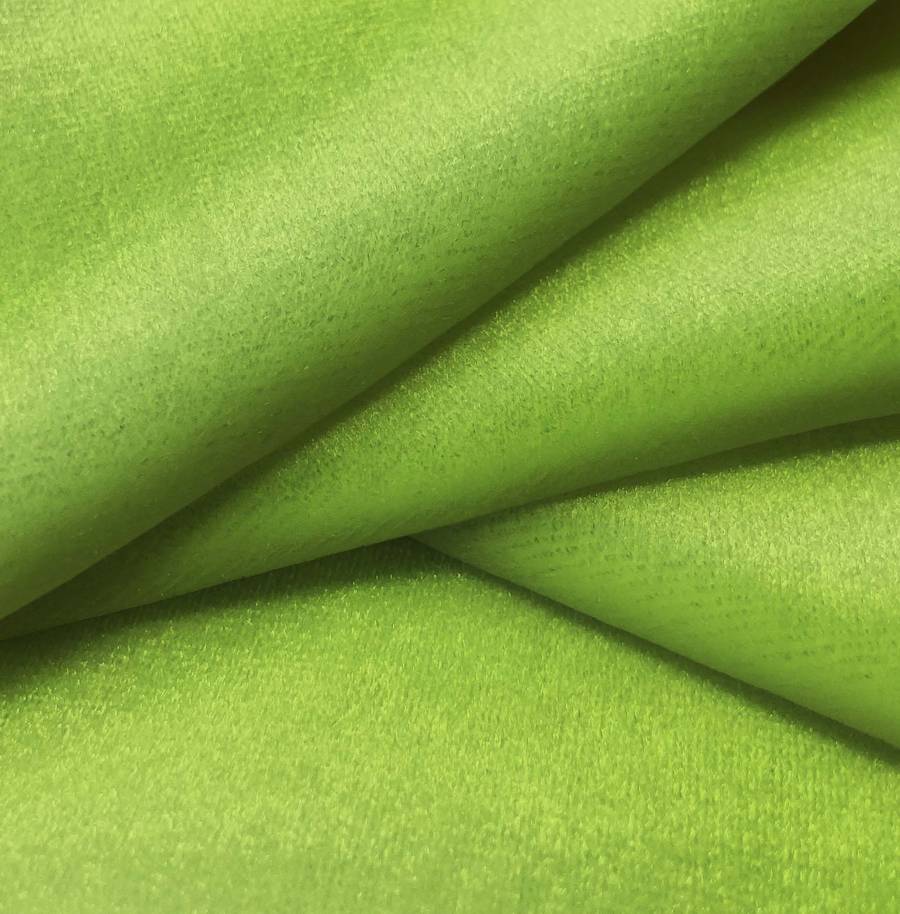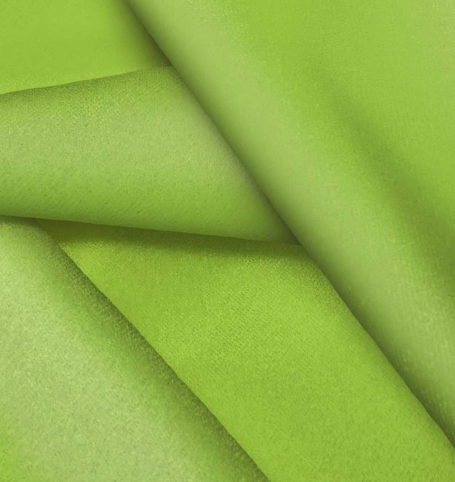 La tela base, Terciopelo Retro - Paris, tiene un color verde cebolla con un CMYK de 58 15 96 2, que lo hace brillante y suave al tacto. Es un color secundario que combina perfectamente con tonos neutros como el blanco, gris y negro, así como con tonos tierra como el marrón y beige.