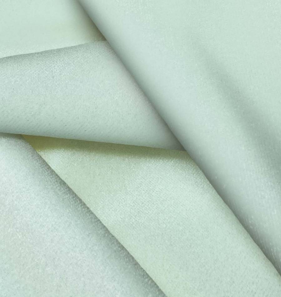 La tela base, Terciopelo Retro - Paris, es una tela de terciopelo compuesta por 93% poliéster y 7% elastano, con un gramaje de 245 gr/m2 y un ancho de 150 cm. El color impreso es Verde Crema de Menta, con un CMYK de 37 6 29 0. Este color se caracteriza por su frescura y suavidad, evocando sensaciones de tranquilidad y armonía. Combina perfectamente con tonos neutros como blanco, gris y beige, así como con colores pastel como el rosa y el azul claro.