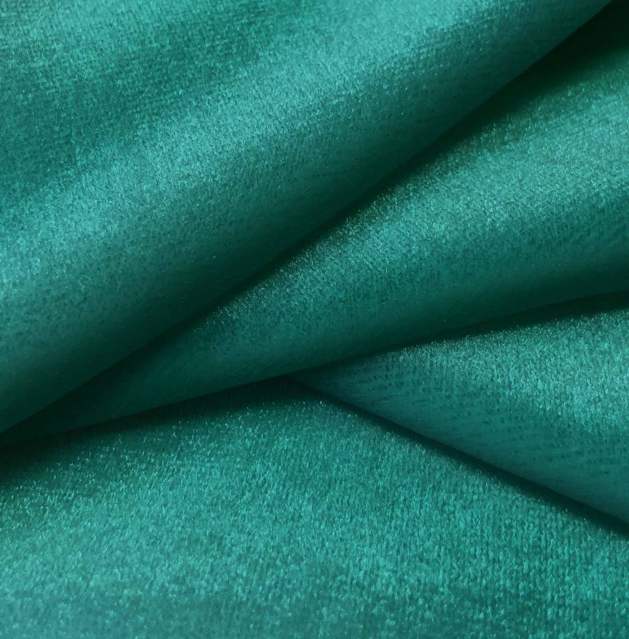 La tela base, Terciopelo Retro - Paris, es de terciopelo con una composición de 93% poliéster y 7% elastano, de color verde menta oscura con CMYK de 87 32 61 23. Este color simboliza la frescura y la naturaleza. Combina especialmente bien con tonos neutros como blanco y beige, así como con colores más vibrantes como el rosa y el amarillo.