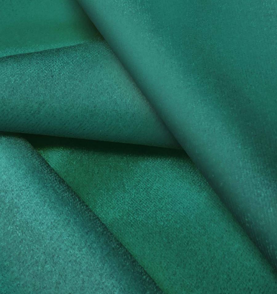 El tejido está impreso con el color liso a una sola cara por impresión digital textil, lo que le proporciona una apariencia brillante y llamativa. La textura suave, visual brillante y elástica del terciopelo se complementan perfectamente con la intensidad del verde mar profundo.