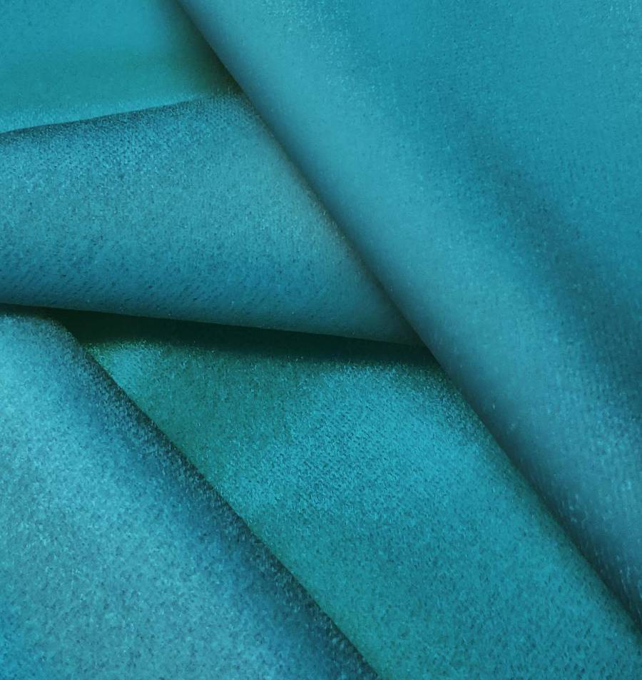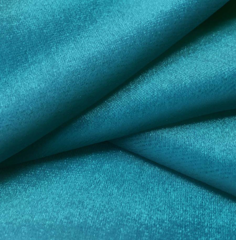 La tela está impresa con el color liso a una sola cara por impresión digital textil, lo que garantiza una alta calidad y durabilidad en el color. La textura suave y brillante del terciopelo se ve realzada por este vibrante tono de Azul Hosta.