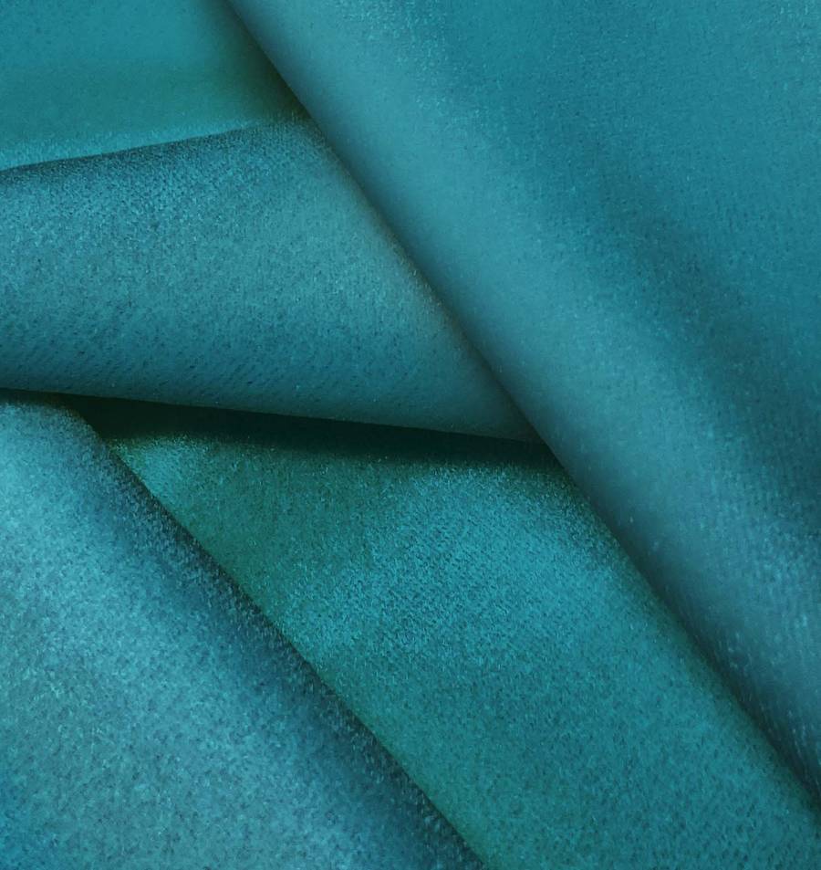 La tela base, Terciopelo Retro - Paris, presenta un color Azul Verdoso con un CMYK de 87 38 40 23, que combina tonos de azul y verde con ciertos matices grises. Este color secundario evoca calma, frescura y elegancia, ideal para aplicaciones en decoración y moda.