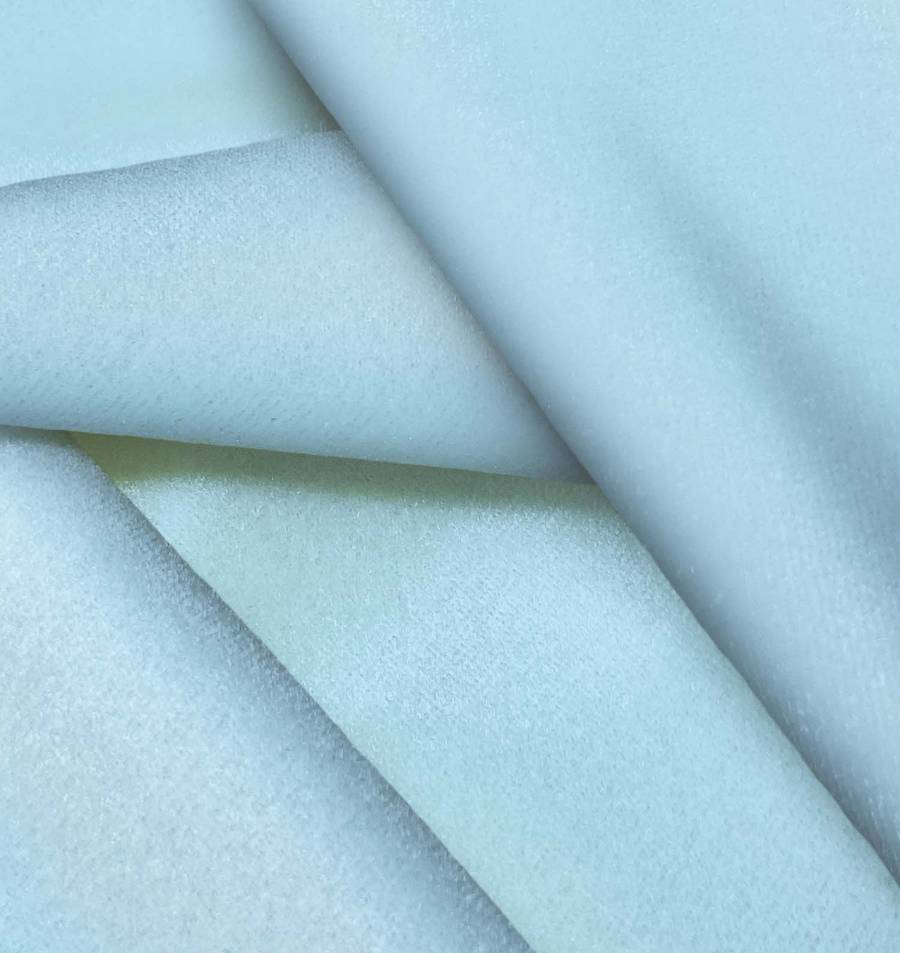 La tecnología de impresión utilizada en este tejido es la sublimación (poliéster), que garantiza una impresión nítida y duradera en la tela base de terciopelo, permitiendo plasmar con precisión el color azul vaquero de forma vibrante y brillante.