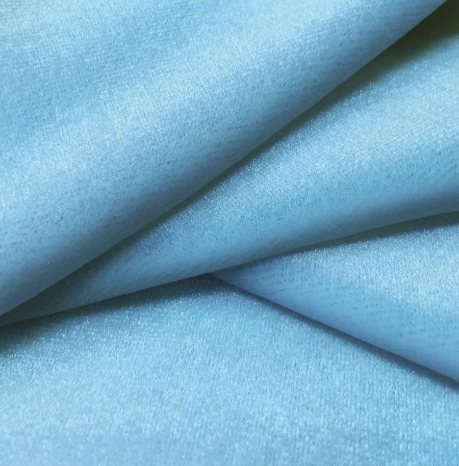 El tejido está impreso con el color liso a una sola cara por impresión digital textil, lo que garantiza una alta calidad y fidelidad cromática. La textura suave y brillante del terciopelo resalta el color azul seda, creando una pieza elegante y sofisticada.