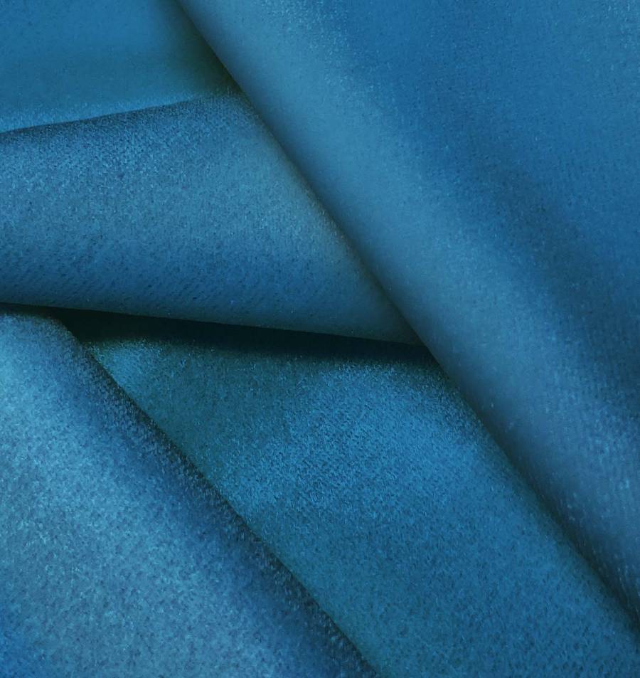 La tela base, Terciopelo Retro - Paris, es un suave y brillante tejido de terciopelo de poliéster con elastano, de color Azul Arrendajo con una composición de CMYK de 95 60 28 13. Este color secundario refleja un tono azul brillante y vibrante, que combina especialmente bien con colores neutros como el blanco, gris y negro, así como con tonos metálicos como el dorado y plateado.