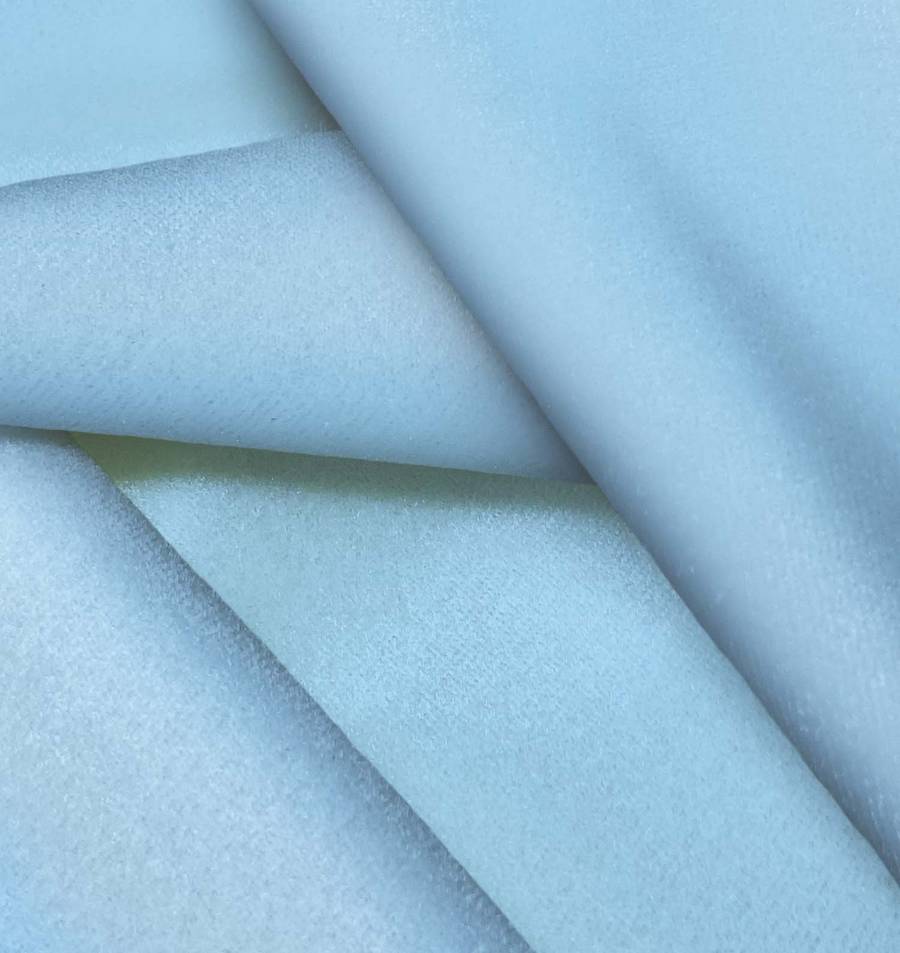 La tela base, Terciopelo Retro - Paris, es una tela de terciopelo compuesta por 93% poliéster y 7% elastano, con un gramaje de 245 gr/m2 y un ancho de 150 cm. Su color liso impreso es Azul Iceberg, con un CMYK de 52 18 2 0. Este color se caracteriza por ser fresco y luminoso, con tonalidades suaves que evocan la calma y la serenidad. Combina especialmente bien con tonos neutros como el blanco, el gris y el beige, creando un contraste elegante y sofisticado.