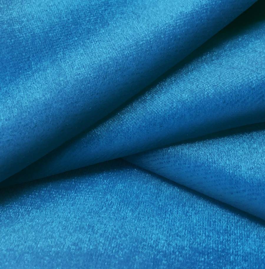 La tela base de Terciopelo Retro - Paris es un suave terciopelo compuesto por 93% poliéster y 7% elastano, con un gramaje de 245 gr/m2 y un ancho de 150 cm. El color liso impreso es Azul Nocturno, con una combinación CMYK de 90 53 9 1.
