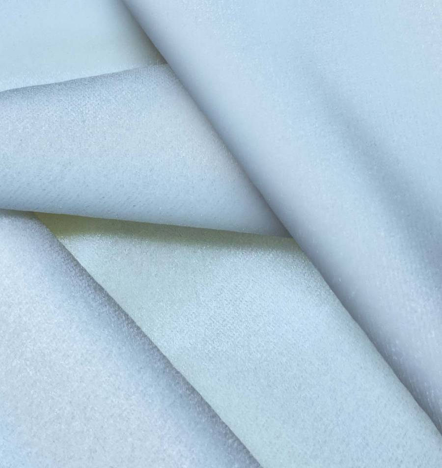 La tela base, Terciopelo Retro - Paris, tiene un color liso impreso de Azul Iceberg con un CMYK de 40 15 2 0. Este color simboliza la calma, la serenidad y la frescura. Combina perfectamente con colores como el blanco, gris y plateado.
