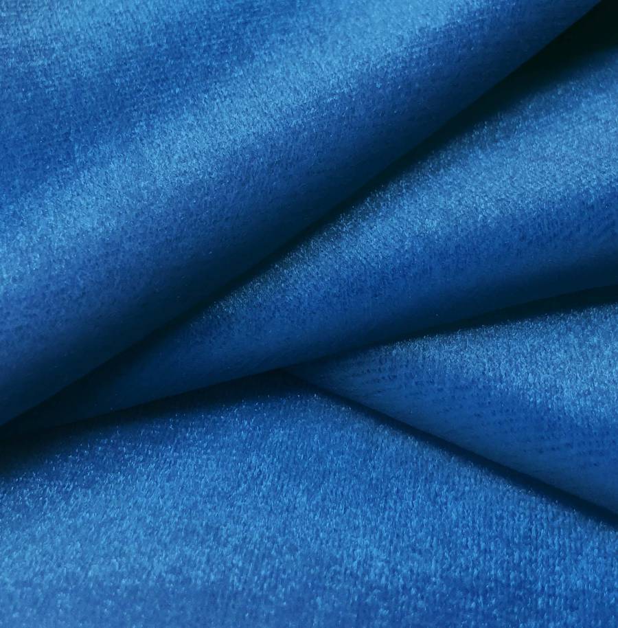 La tela base, Terciopelo Retro - Paris, presenta un color azul zafiro intenso, con un CMYK de 99 71 8 1. Este tono profundo evoca elegancia y sofisticación, complementándose perfectamente con tonos neutros como blanco, negro y gris, así como con tonos metálicos como el oro y la plata.