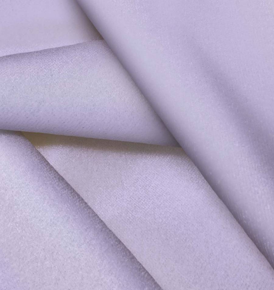 La tela base es un Terciopelo Retro - Paris de color Morado, Lila Orquídea, con un CMYK de 40 40 5 0, que combina tonos suaves y vibrantes. Impreso de forma digital textil a una sola cara, ofrece una textura suave, brillante y elástica.