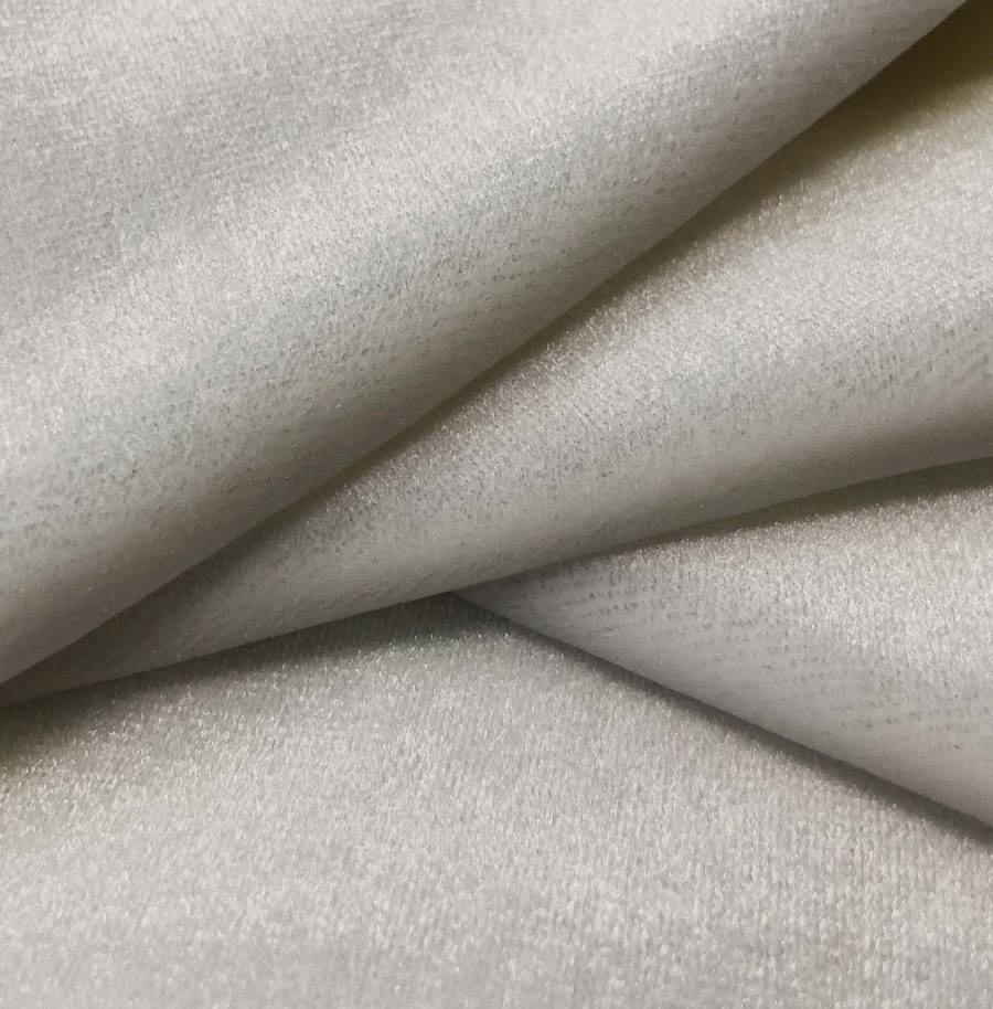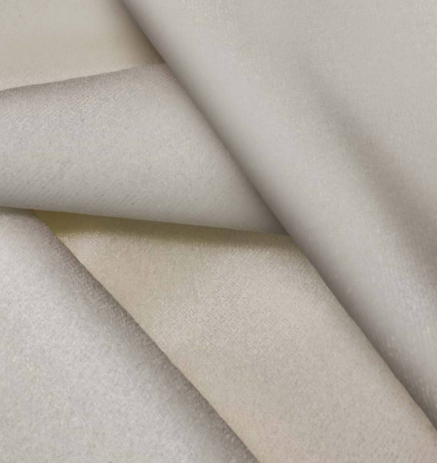 La tela base, Terciopelo Retro - Paris, es un suave y brillante terciopelo en tonos Gris y Plata pálida, con un CMYK de 36 31 36 11. Este color secundario evoca elegancia y modernidad, combinando especialmente bien con tonos neutros como blanco, negro y dorado.
