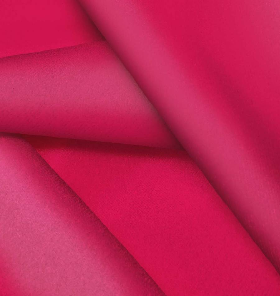 Este tejido está impreso con color liso a una sola cara por impresión digital textil. La textura suave y brillante del terciopelo junto con el intenso color rojo le dan un aspecto elegante y sofisticado. Además, al ser elástico, ofrece comodidad y versatilidad en su uso.