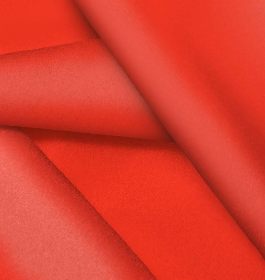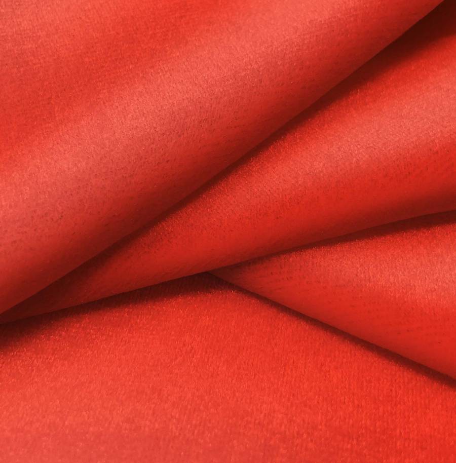 La Tela de Terciopelo Retro - Paris es de color Rojo Ferrari, con un CMYK de 0 92 91 0, lo que le proporciona un tono intenso y vibrante. Este color se caracteriza por su vitalidad y pasión, con tonos cálidos que evocan la energía y la fuerza.