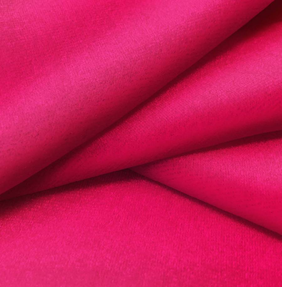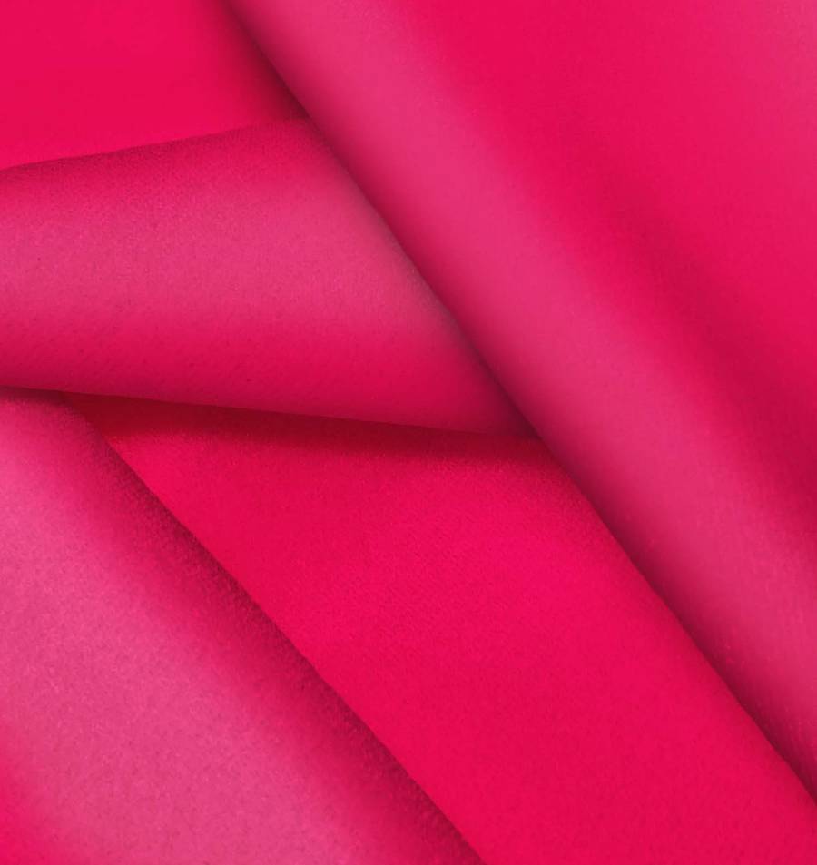 El Terciopelo Retro - Paris es un tejido de terciopelo en tono rojo frambuesa, con una composición de 93% poliéster y 7% elastano, reflejado en el CMYK de 3 99 59 0. Este color vibrante se combina especialmente bien con tonos neutros como el gris y el blanco, así como con tonos metálicos como el dorado y el plateado.