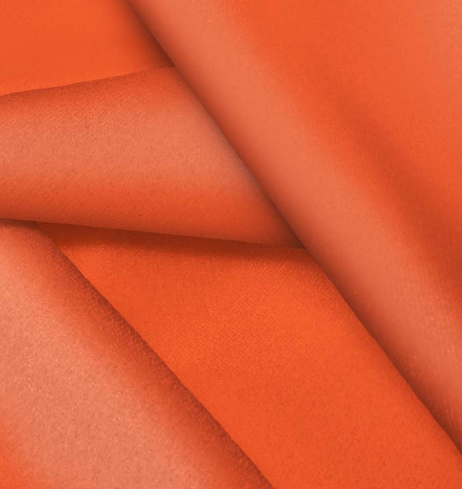 La tela está impresa con este color liso a una sola cara por impresión digital textil. Se caracteriza por tener una textura suave, visualmente brillante y elástica. La combinación del terciopelo retro y el color rojo cangrejo crea una apariencia elegante y sofisticada, perfecta para prendas de vestir y decoración de interiores.