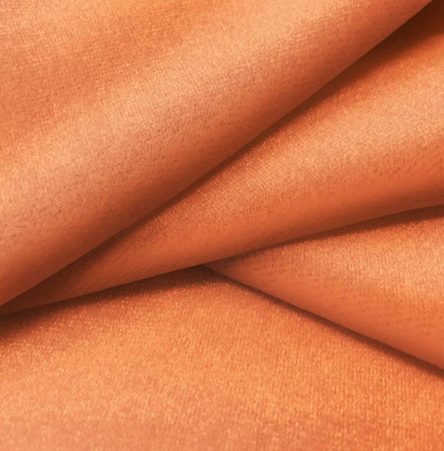 La tela base, Terciopelo Retro - Paris, es de terciopelo con composición de 93% poliéster y 7% elastano. El color impreso es Rojo Arena del Desierto con CMYK 0 69 73 0. Este color simboliza la pasión y calidez del desierto, combinando especialmente con tonos tierra y marrones. El tejido está impreso a una sola cara por impresión digital textil.