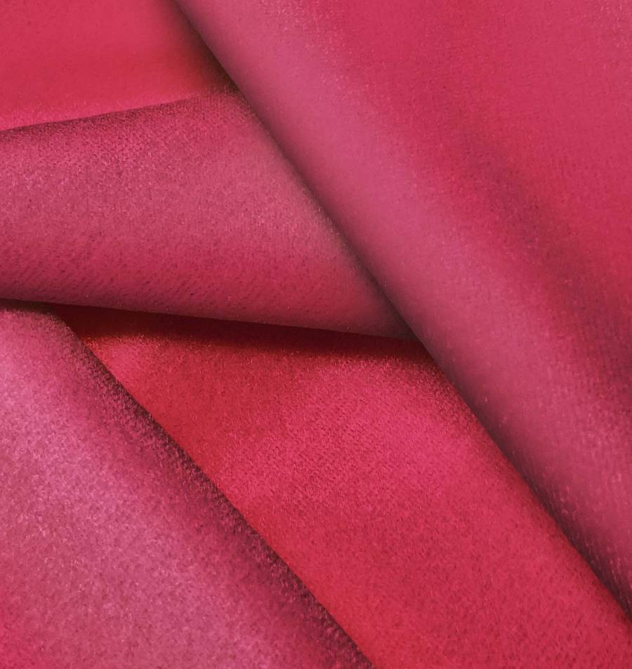 La tela base Terciopelo Retro - Paris es de alta calidad, con un tono Rojo Rioja vibrante y profundo, reflejando un CMYK de 20 96 57 12. Este color simboliza la pasión y la energía, ideal para prendas y decoración de interiores llamativas. Combina especialmente bien con colores neutros como blanco, negro y gris, resaltando su intensidad y sofisticación.
