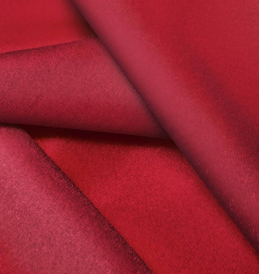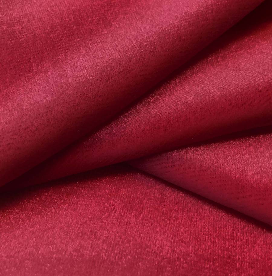 La tela base Terciopelo Retro - Paris es un terciopelo brillante y elástico en tono rojo carmín, con una composición de 93% poliéster y 7% elastano, representado por un CMYK de 26 100 91 28. Este color simboliza pasión y elegancia, combinando perfectamente con tonos neutros como blanco, negro y dorado.