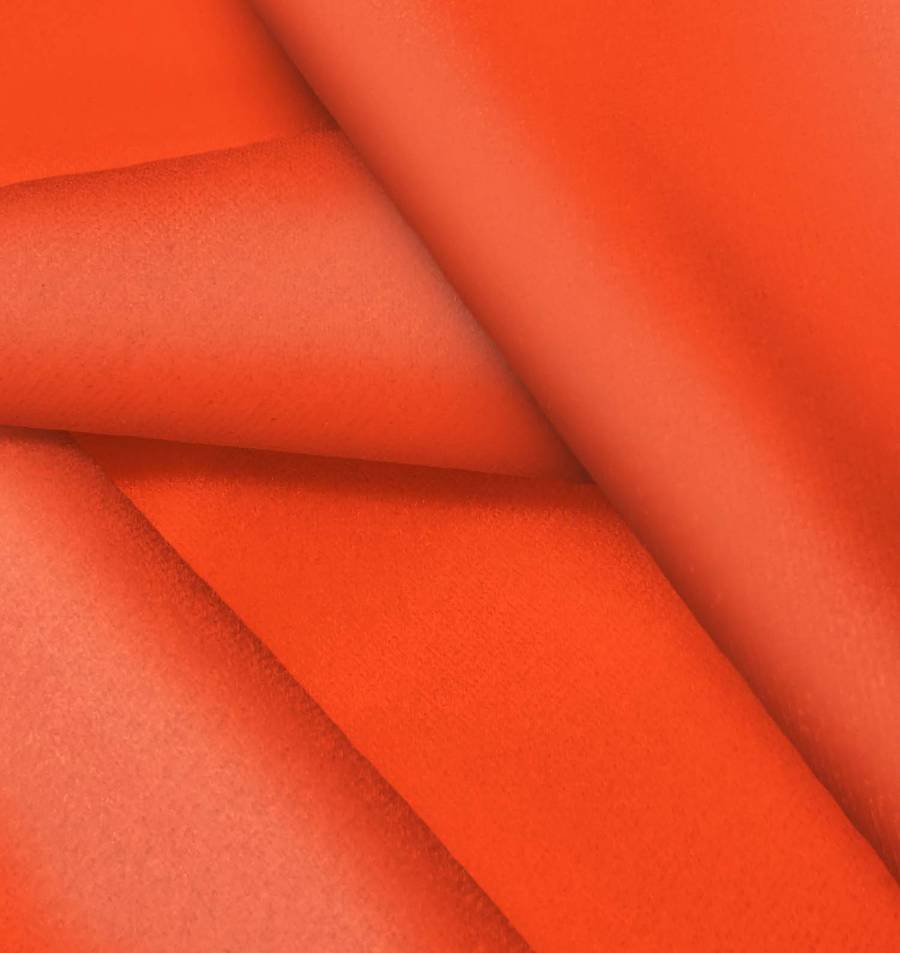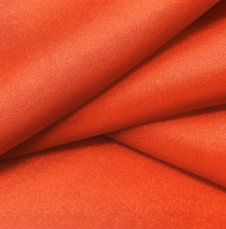 La tela base, Terciopelo Retro - Paris, es un suave y brillante tejido de terciopelo compuesto por 93% poliéster y 7% elastano, de color rojo con tintas magenta y amarilla predominantes (CMYK: 0 85 87 0). Este tono oficialmente llamado Annato, se caracteriza por ser vibrante y cálido, ideal para aportar elegancia y sofisticación a cualquier prenda o decoración. Combina especialmente bien con colores neutros como blanco, negro y dorado, resaltando su intensidad y brillo.