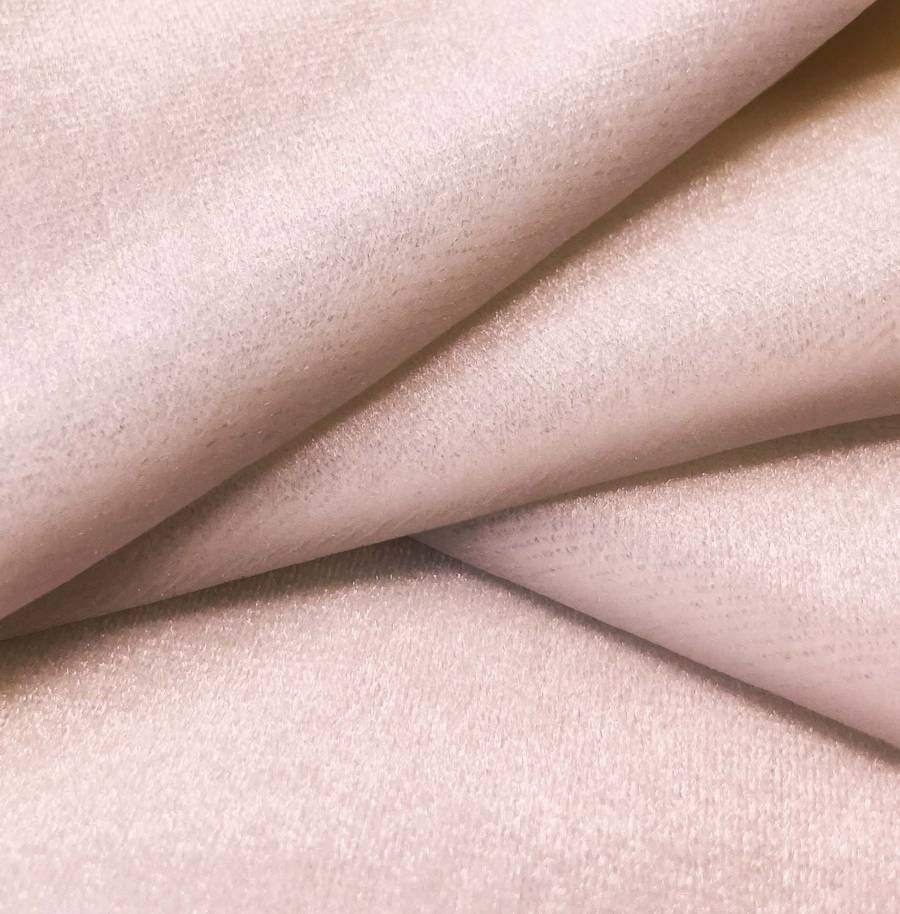La tela base, Terciopelo Retro - Paris, es una tela de terciopelo compuesta por 93% de poliéster y 7% de elastano. Su color liso impreso es Rojo Pálido, con una combinación de CMYK de 0 34 23 0, lo que le da un aspecto suave y brillante. Este color secundario se puede combinar perfectamente con tonos neutros como blanco, negro y gris.
