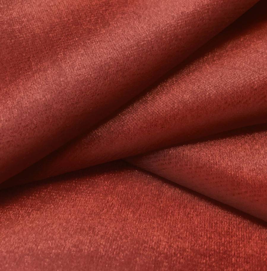 La tela base, Terciopelo Retro - Paris, presenta un color Naranja Ladrillo Refractario con un contenido CMYK de 28 99 100 34. Este tono cálido y vibrante combina muy bien con colores neutros como beige, blanco o gris.