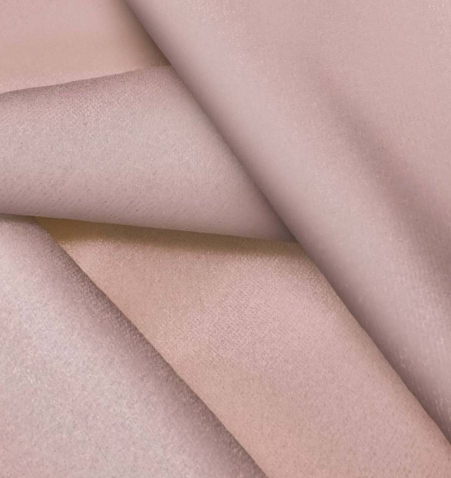 La tela base, Terciopelo Retro - Paris, es un suave terciopelo de poliéster y elastano con un color rosa mate, con una composición de tinta en CMYK de 26 44 35 11. Este color secundario simboliza la delicadeza y la elegancia, combinando a la perfección con tonos neutros como blancos, grises y negros.