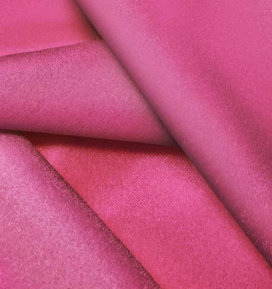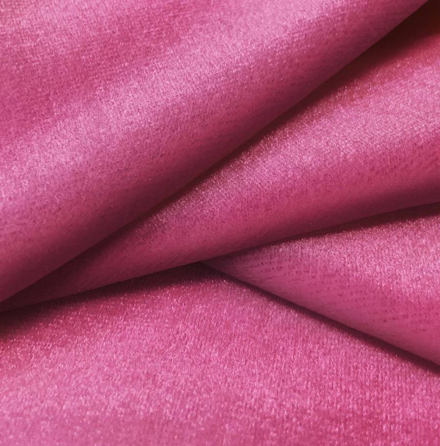 La tela base es Terciopelo Retro - Paris en color rosa Bouganvilla, con un CMYK de 15 84 27 3. Este color se caracteriza por ser vibrante y llamativo, combina especialmente bien con tonos neutros como gris o blanco, así como con tonos más oscuros como negro o azul marino.