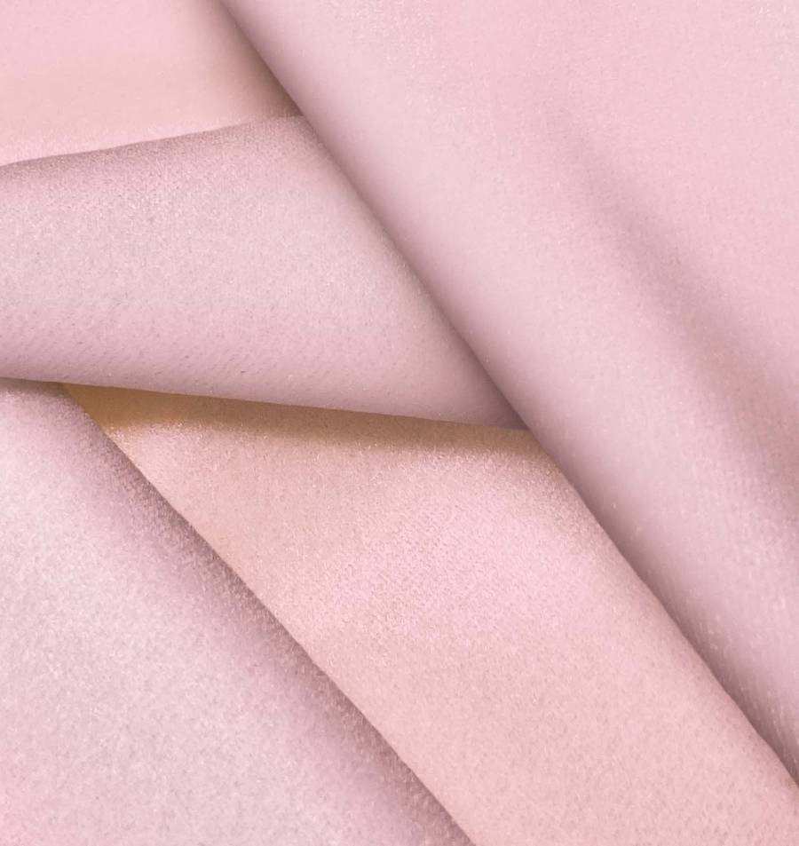 La tela base Terciopelo Retro - Paris es de terciopelo con una composición de 93% poliéster y 7% elastano, de 245 gr/m2, de color rosa Bubblegum con un CMYK de 0 40 15 0. Este color rosa Bubblegum es un tono suave y brillante que combina perfectamente con colores pastel como el blanco, el beige o el celeste.
