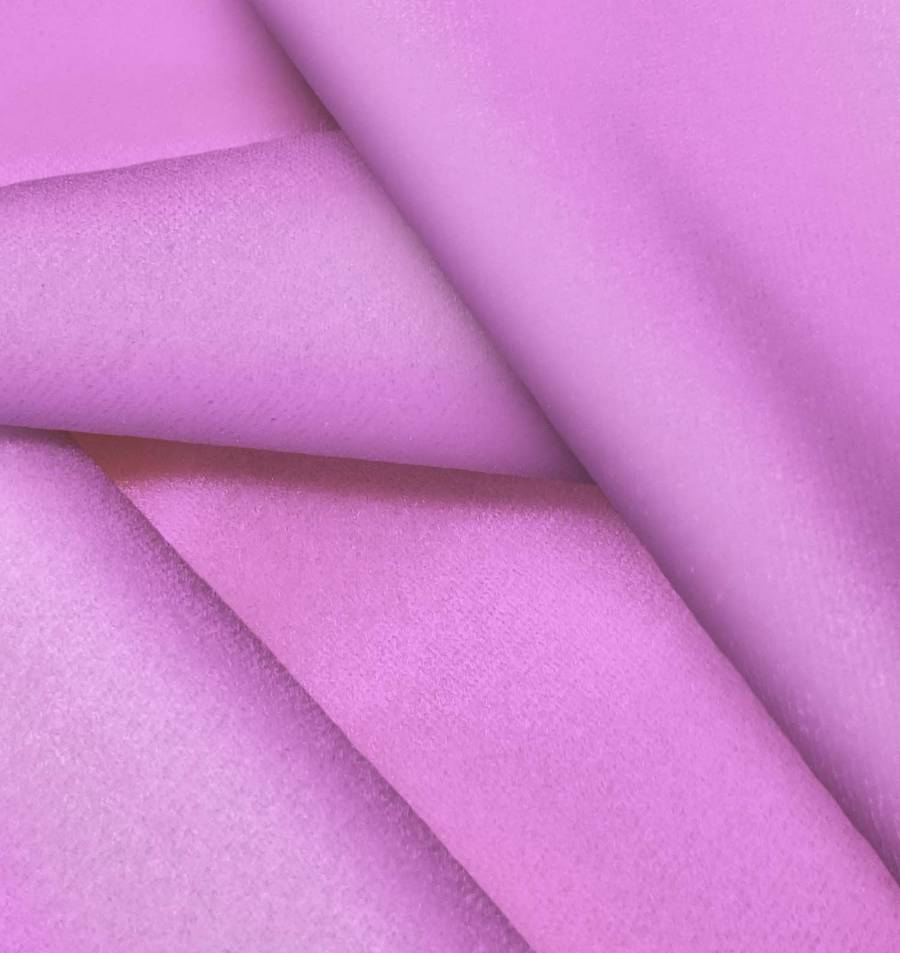 La tela base, Terciopelo Retro - Paris, es un suave terciopelo de poliéster y elastano en color rosa profundo, con un CMYK de 31 62 0 0. Este color simboliza la feminidad y la sensualidad, combinando a la perfección con tonos neutros como blanco, beige y negro.