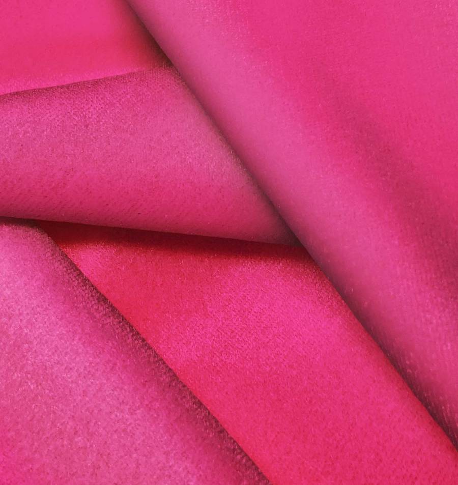 La tela base, Terciopelo Retro - Paris, es una tela de terciopelo con una composición de 93% poliéster y 7% elastano, que se caracteriza por su textura suave y brillante. El color impreso en este caso es un llamativo Rosa Razzmatazz, con una combinación de tintas de Cyan, Magenta y Yellow en el CMYK de 2, 94, 29, 0 respectivamente. Este color secundario combina especialmente bien con colores neutros como el blanco, gris o negro, creando contrastes elegantes y modernos.