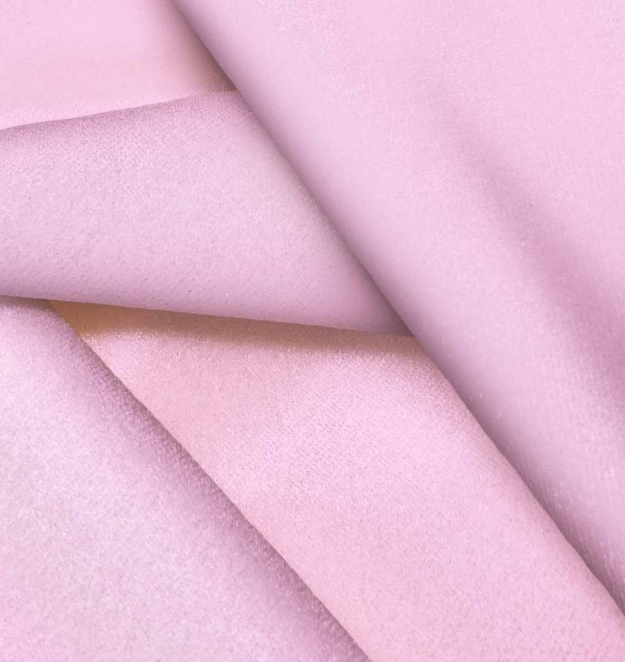 La tela base, Terciopelo Retro - Paris, es un terciopelo suave de color Rosa Claro Caliente, con CMYK de 0 40 0 0. Representa la elegancia y el lujo. Combina perfectamente con tonos neutros como blancos, grises y negros, resaltando su brillo y suavidad.