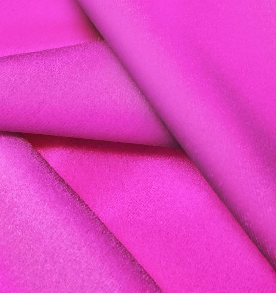 La tela está impresa con este color liso a una sola cara por impresión digital textil, lo que le da un acabado brillante y vibrante. La composición de la tela de terciopelo le aporta una textura suave, elástica y brillante, perfecta para prendas de vestir y decoración de interiores.