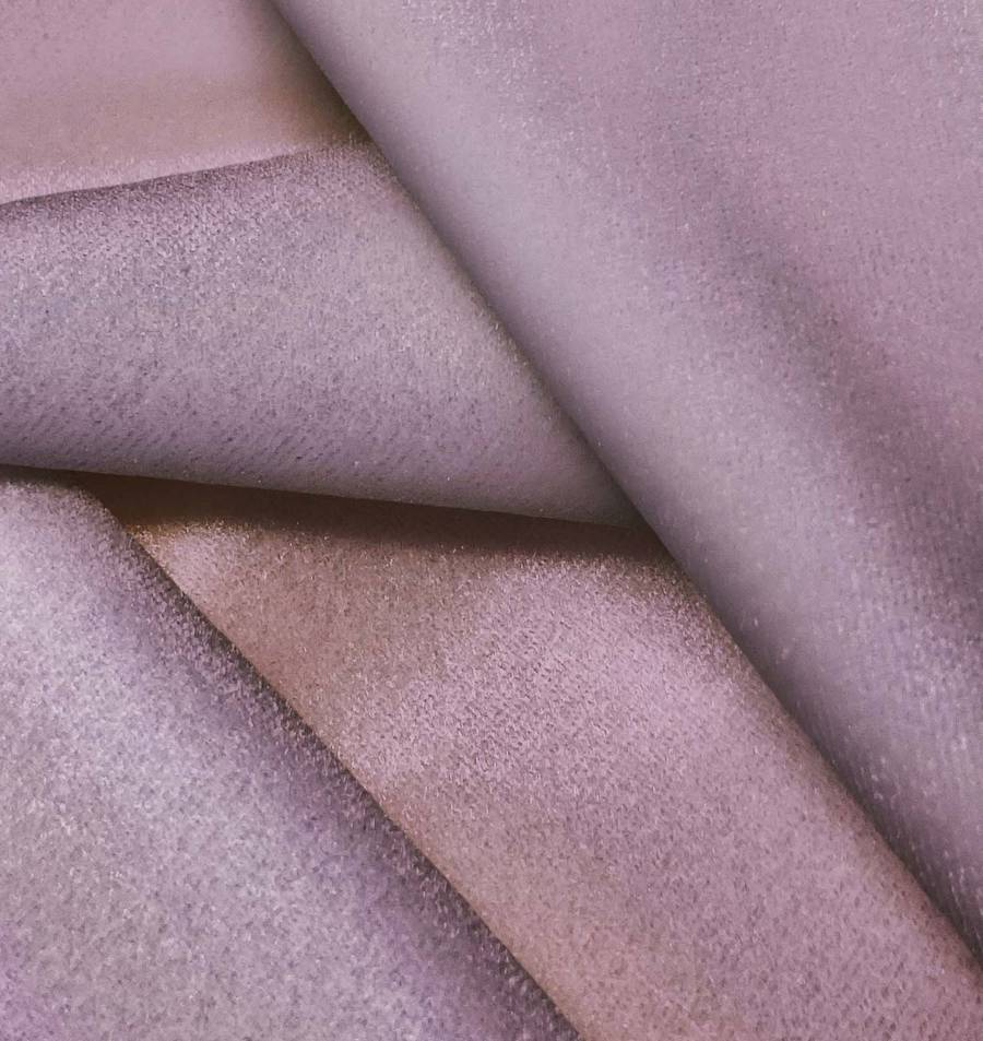 La tela base, Terciopelo Retro - Paris, es de tela de terciopelo compuesta por 93% de poliéster y 7% de elastano. El color liso impreso es Rosa Mountbatten con un CMYK de 42 52 29 11. Este color rosa combina especialmente bien con tonos pastel y neutros.