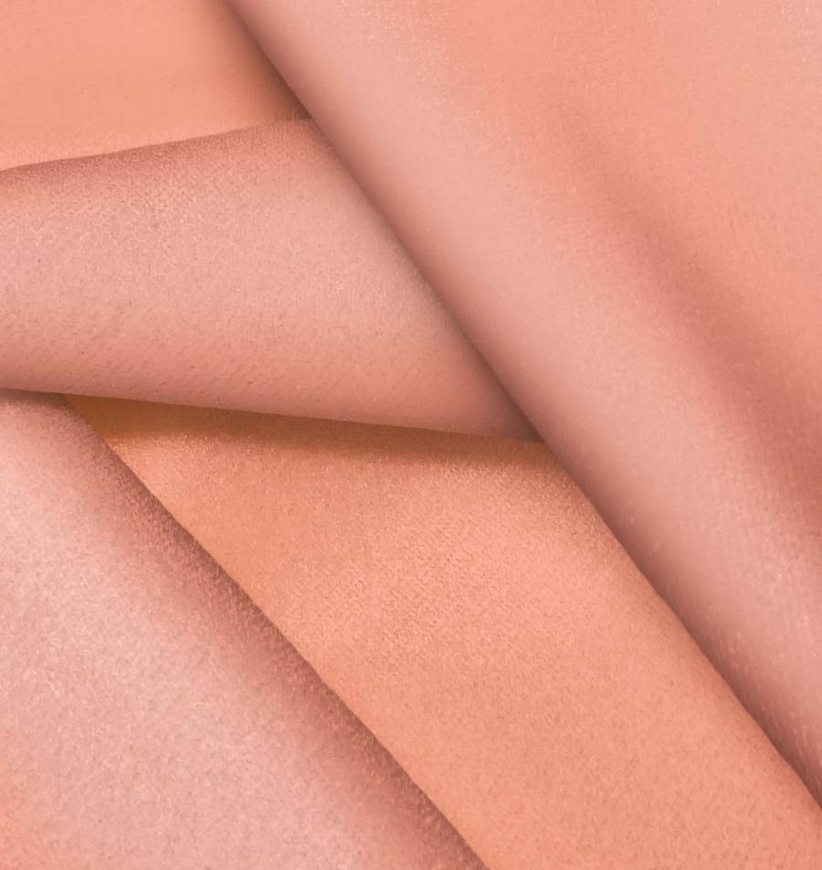 La tela base de Terciopelo Retro - Paris es de color Rosa Salmón, con una composición de 93% poliéster y 7% elastano, reflejando un CMYK de 0 58 50 0. Este color transmite calidez y suavidad, ideal para diseños elegantes y sofisticados. Combina especialmente bien con tonos neutros como blanco, beige o gris, resaltando su brillo y luminosidad.