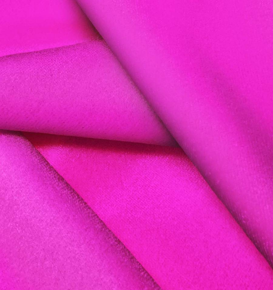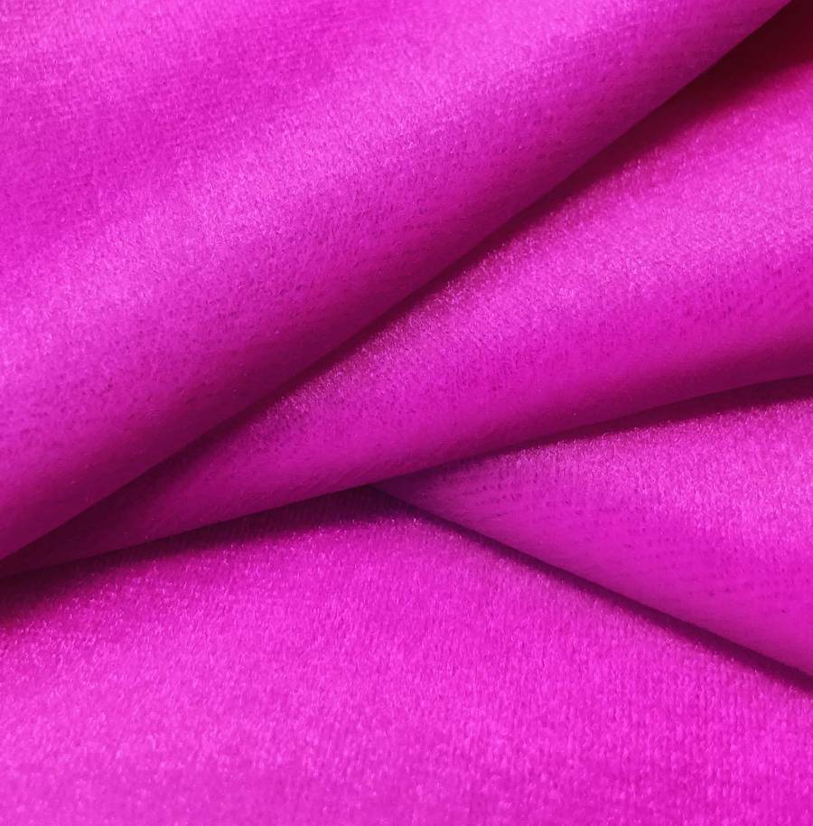 El tejido impreso con este color liso a una sola cara por impresión digital textil se caracteriza por su suavidad, elasticidad y brillo visual. La combinación de la textura del terciopelo con el color rosa shocking crea una estética lujosa y moderna, ideal para prendas de moda y decoración con un toque de audacia y sofisticación.