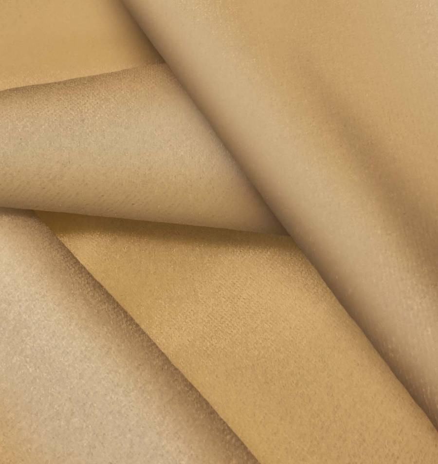 La tela base, Terciopelo Retro - Paris, tiene un color Marrón-Dorado Viejo con un CMYK de 27 43 67 17, lo que le confiere un aspecto vintage y elegante. Combina especialmente bien con tonos neutros como beige, blanco y negro, resaltando su brillo y suavidad.