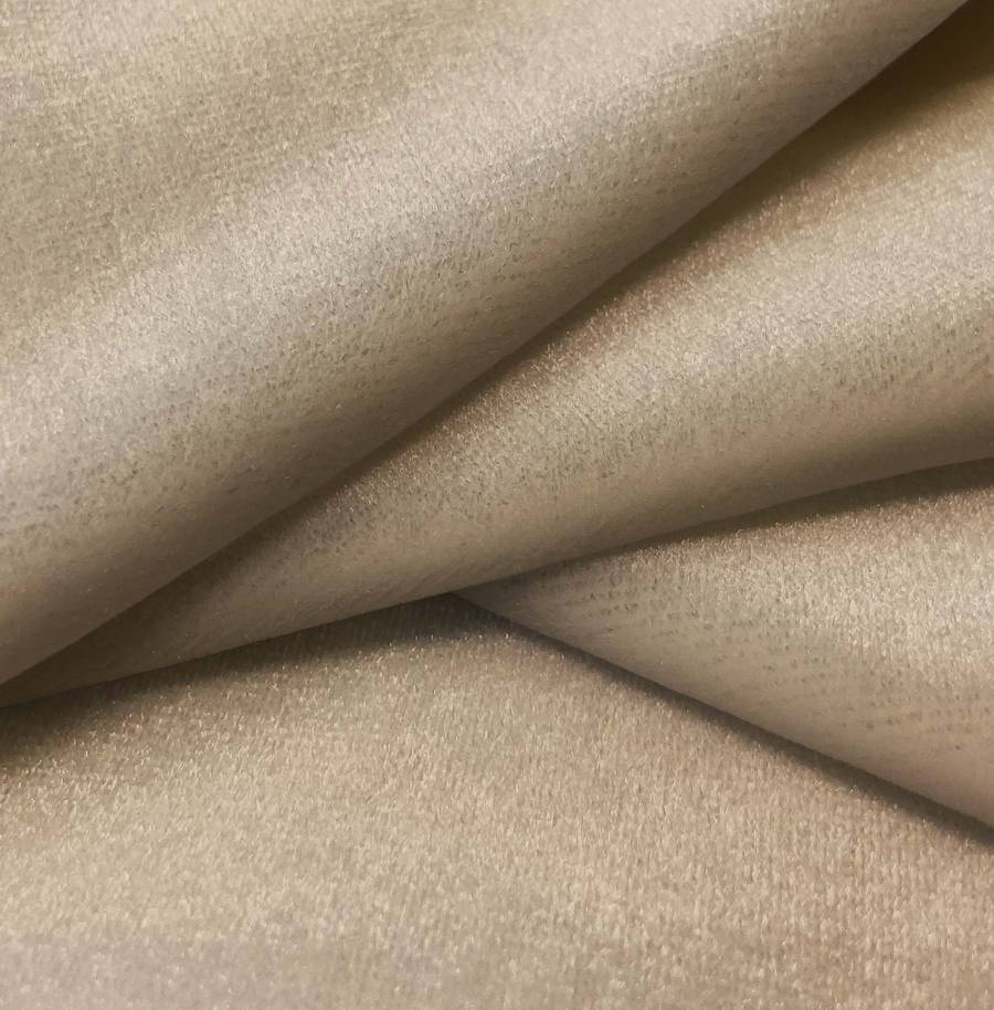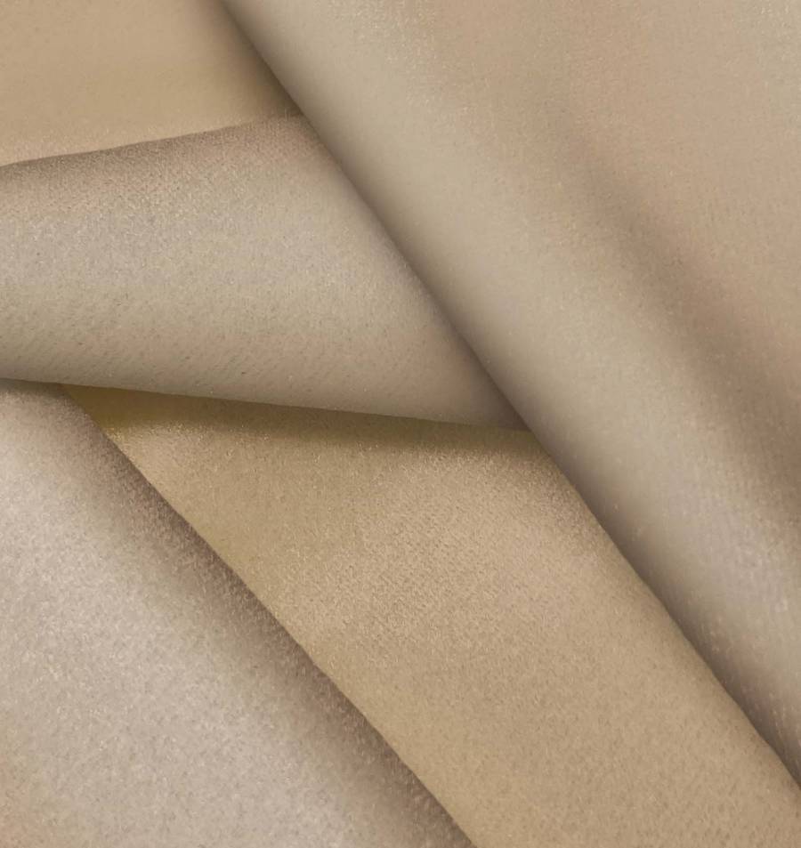 La tela base de Terciopelo Retro - Paris es suave y elástica, con un color marrón y sándalo CMYK 32 39 52 21. Este tono cálido y elegante combina especialmente bien con colores neutros como beige y blanco.