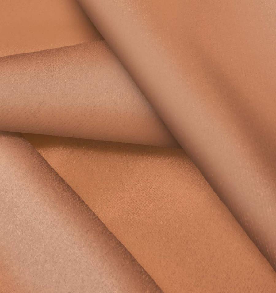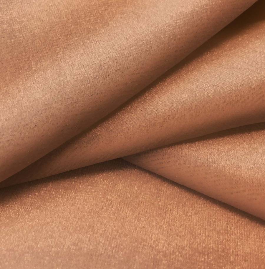 La tela base, Terciopelo Retro - Paris, es de terciopelo con composición de 93% poliéster y 7% elastano, con un gramaje de 245 gr/m2 y un ancho de 150 cm. El color liso impreso es Marron Terracota Oscuro, con un CMYK de 25 61 69 17. Este color se destaca por su intensidad y calidez, combinando especialmente bien con tonos neutros como blanco, gris y beige.