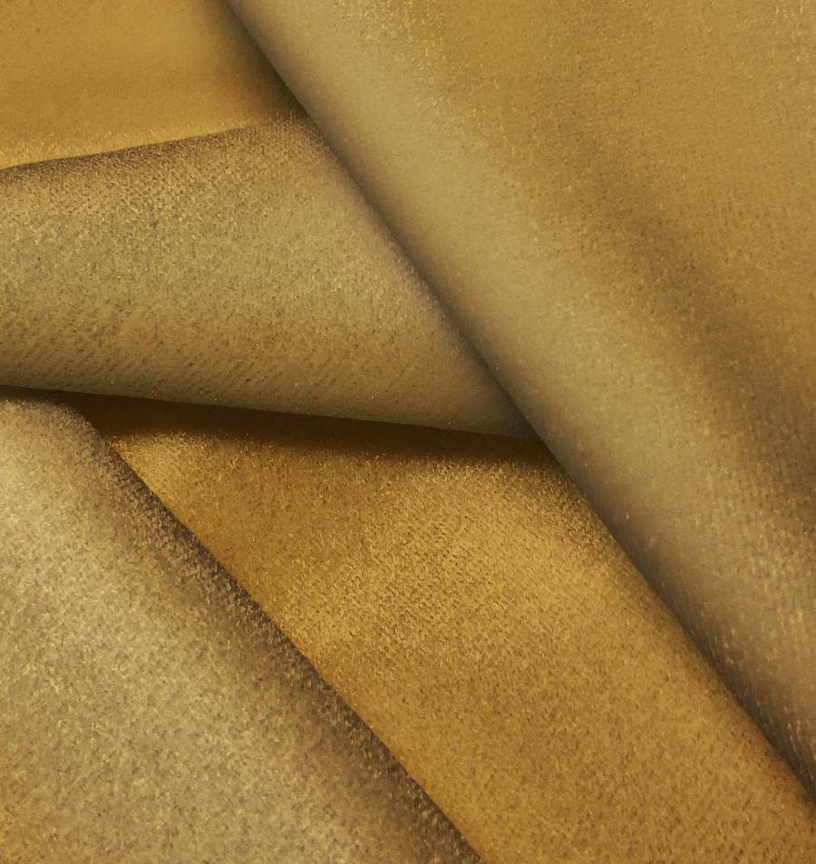 La tela está impresa con el color liso a una sola cara por impresión digital textil, lo que garantiza una alta calidad y durabilidad en el color sin afectar la suavidad y brillo característicos del terciopelo.