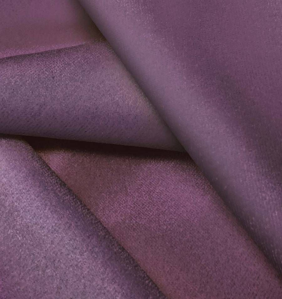 La tela base, Terciopelo Retro - Paris, es de terciopelo con una composición 93% poliéster y 7% elastano de color Morado Bizancio Oscuro, con un CMYK de 62 78 38 36. Resalta su suavidad y brillo, combinado con el contraste vibrante de los tonos magenta y amarillo. La tela está impresa con el color liso a una sola cara por impresión digital textil.