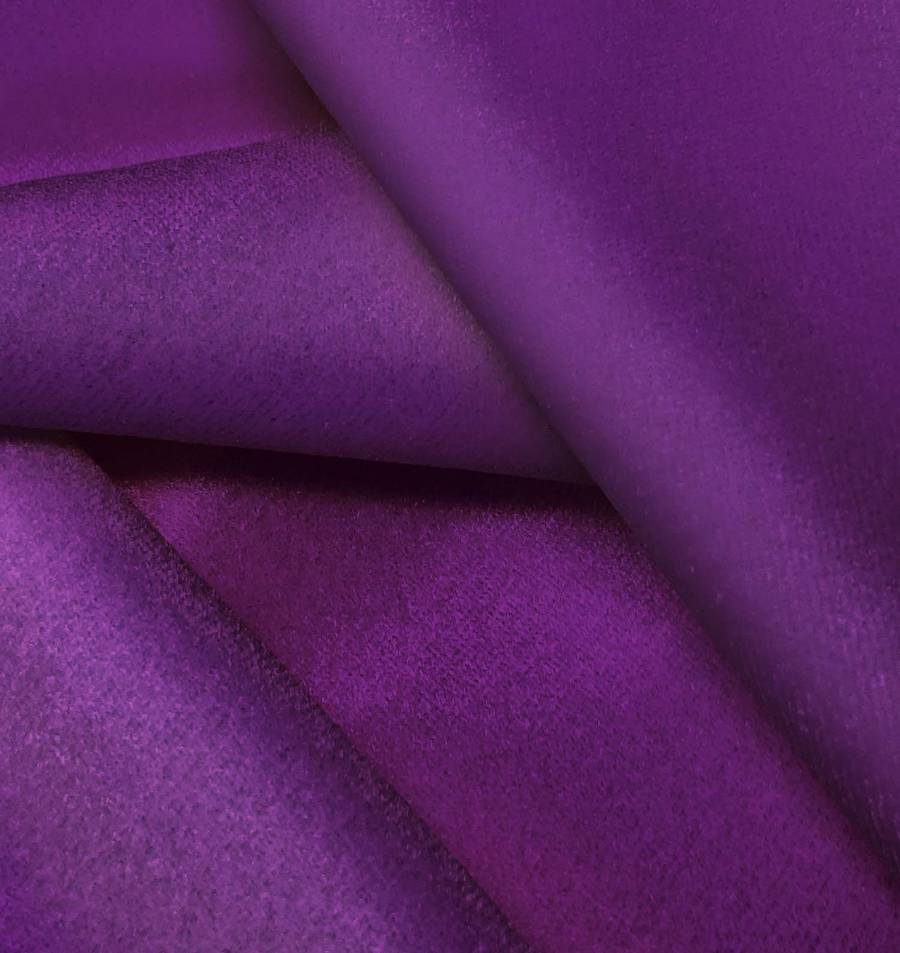 La tela base Terciopelo Retro - Paris es de terciopelo con composición de 93% poliéster y 7% elastano. El color liso impreso es Morado-Mora con el siguiente CMYK: 82 100 29 24. Este color secundario combina perfectamente con tonos blancos, grises y plateados, creando una sensación elegante y sofisticada.