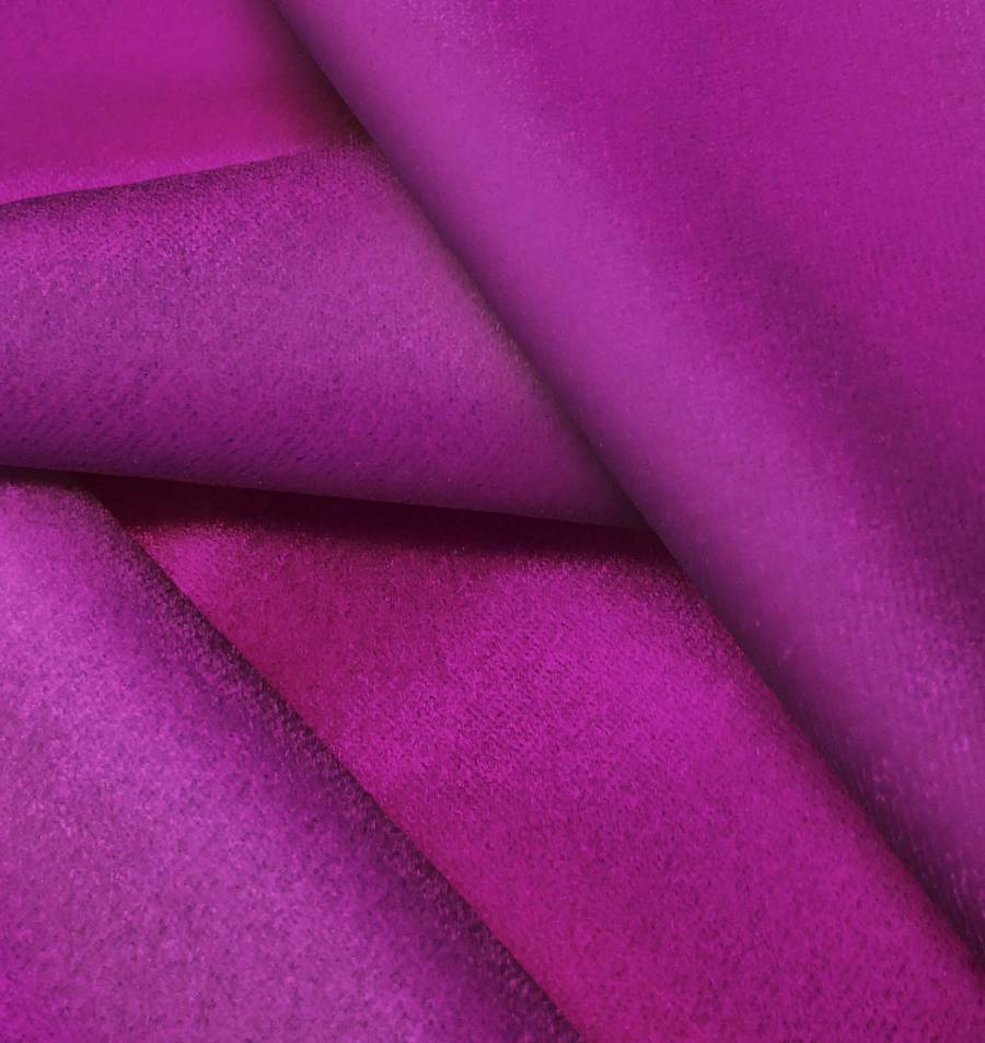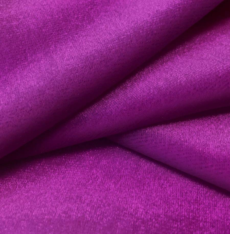La tela base, Terciopelo Retro - Paris, es un tejido de terciopelo compuesto por 93% poliéster y 7% elastano. El color impreso es un morado vivo con una combinación de tintas cyan (58), magenta (100), yellow (12) y black (4) en un CMYK de 58 100 12 4. Este color se caracteriza por su intensidad y brillo, y combina especialmente bien con tonos neutros como gris, blanco y negro.
