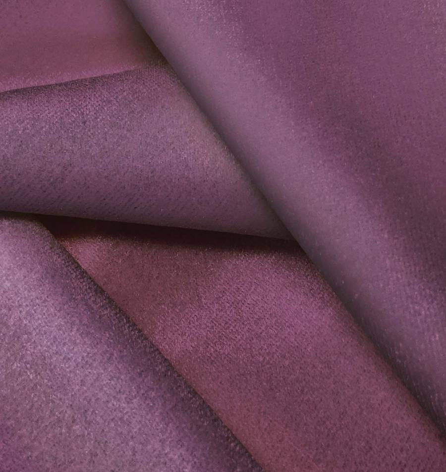 La tela base de este tejido es Terciopelo Retro - Paris, un suave y brillante terciopelo de poliéster con un color liso impreso en tono Morado Ube Halaya. Con un porcentaje de color CMYK de 56 80 38 35, el color Morado Ube Halaya es vibrante y profundo, combinando magenta, violeta y toques de negro. El color secundario resalta por su intensidad y elegancia, ideal para prendas de moda y decoración.